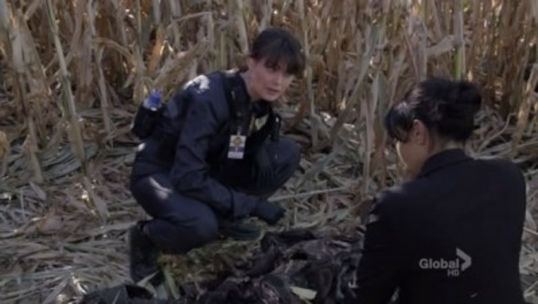 The Sin in the SisterhoodUm corpo disfarçado de espantalho é encontrado com um ferimento à bala num remoto milharal, e a equipe é forçada a trabalhar contra o tempo a fim de escapar de uma tempestade e de possíveis complicações que poderiam comprometer a evidência. Booth e Brennan interrogam as três esposas da vítima, que, além disso, são irmãs, e descobrem que ciúmes entre irmãs e o desejo delas pela atenção do marido causou uma grande divisão na família. Booth e Brennan também interrogam um parente que desaprovava a poligamia da vítima. Enquanto isso, Cam sente-se insegura em sua relação com seu namorado médico (participação de Gold), todavia ambos percebem que precisam fazer do relacionamento uma prioridade. |